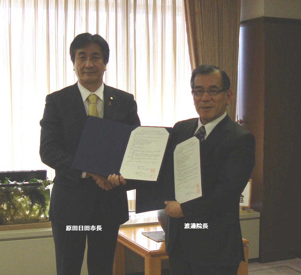 このシステムで精製された水を、災害等で水道ライフラインが破断し水の供給が途絶えた時に、地域の皆様に無償で供給する給水場として開放することで少しでも地域の皆様に恩返しができればと、この度、日田市と“災害時における水の供給に関する協定書”を結びました。