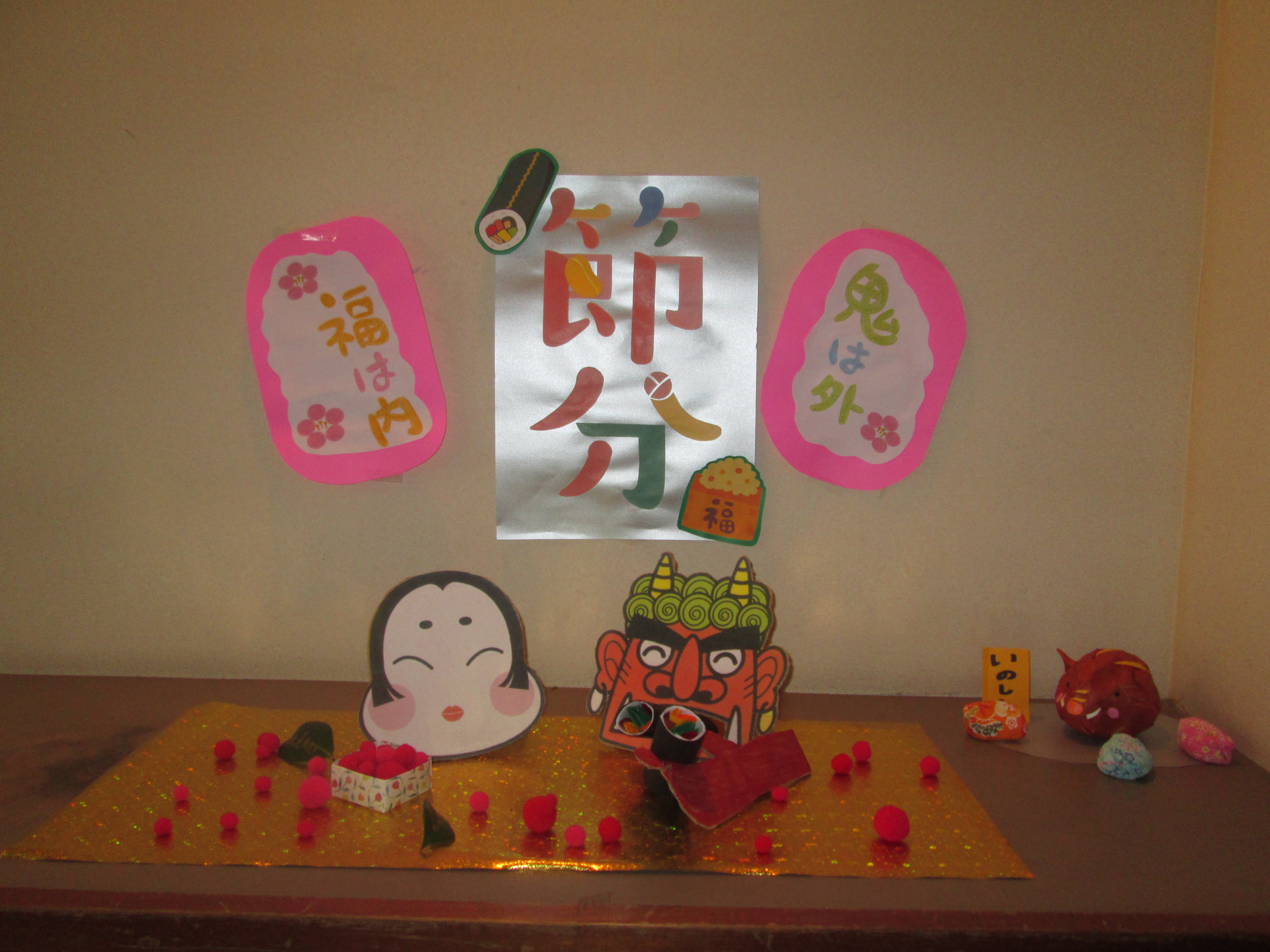 早いものであっという間に1月が過ぎ、寒さ厳しい2月になりました。 インフルエンザが流行っていますが、うがい手洗いを忘れずにしてますか? 2月3日は節分、今年は東北東が恵方でした。 豆まきをすると「鬼払い」「厄払い」となり幸福を呼び込めるそうです。 通所リハビリテーションさざんか にやって来た鬼を利用者様が退治してくれました。